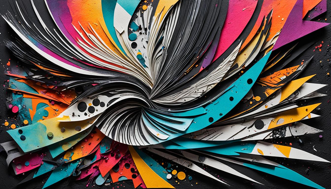 Collage is perfect for telling stories through art. Mix different materials and methods to make art that shows your feelings and views. It’s a way to mix the known with the new, making art that stands out.