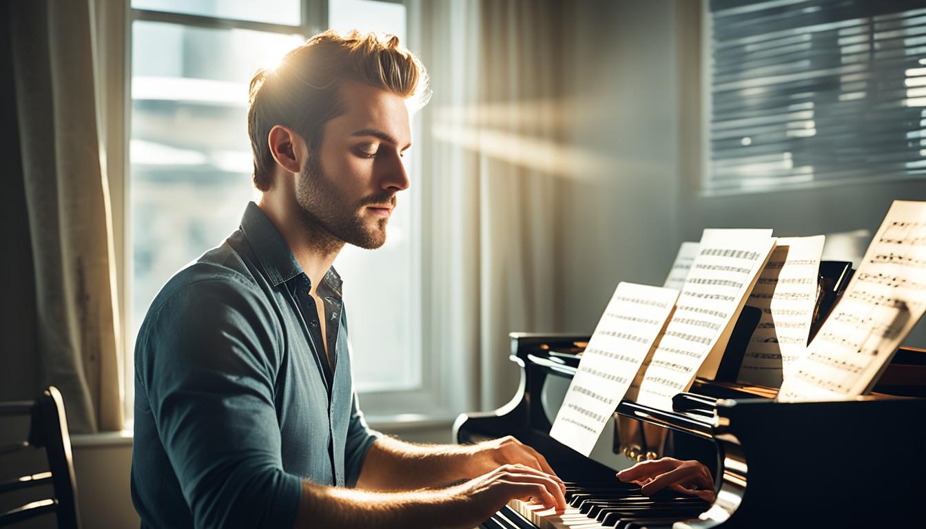 Unlock your musical creativity and start a rewarding journey of music composition. This guide is for both beginners and experienced musicians. It will give you the tools and techniques to make your own music. You’ll learn the basics of music theory for composers and how to set up a home recording studio setup. You’ll also discover how to write your own creative songwriting and produce your own DIY music.