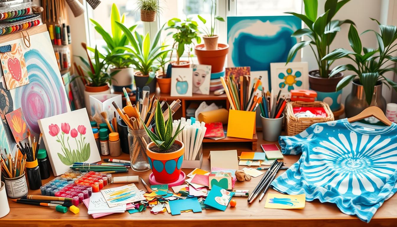Keep your art supplies organized to spark creativity. Use paint palettes, brush holders, and art kits to stay tidy. With the right crafting ideas and art supplies, you’re set for a world of creative hobbies and self-expression.